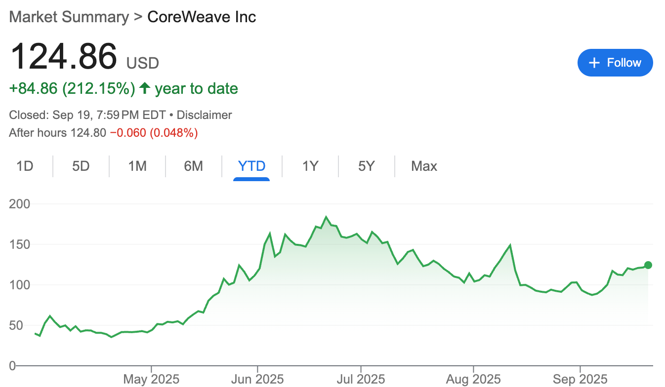 CoreWeave $CRWV ( ▼ 5.04% ), the AI cloud computing company that went public in March 2025, has since skyrocketed 212.15% due to strong demand for its AI cloud platform.