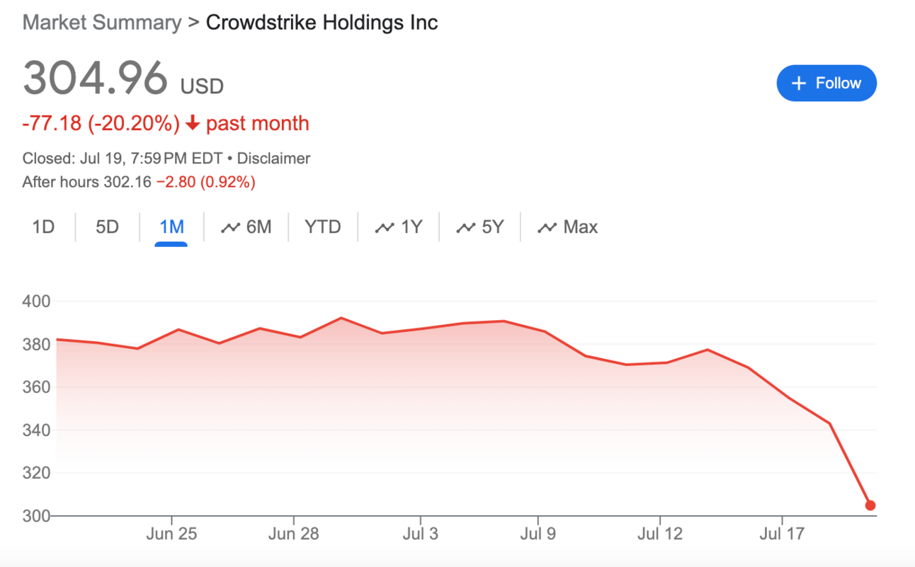 The stock market, being the drama queen that it is, reacted with all the subtlety of a soap opera villain. CrowdStrike’s stock fell 11.10% on Friday. Wedbush's Dan Ives called it a “black eye moment” for the company, saying CrowdStrike’s brand damage could last for a while.