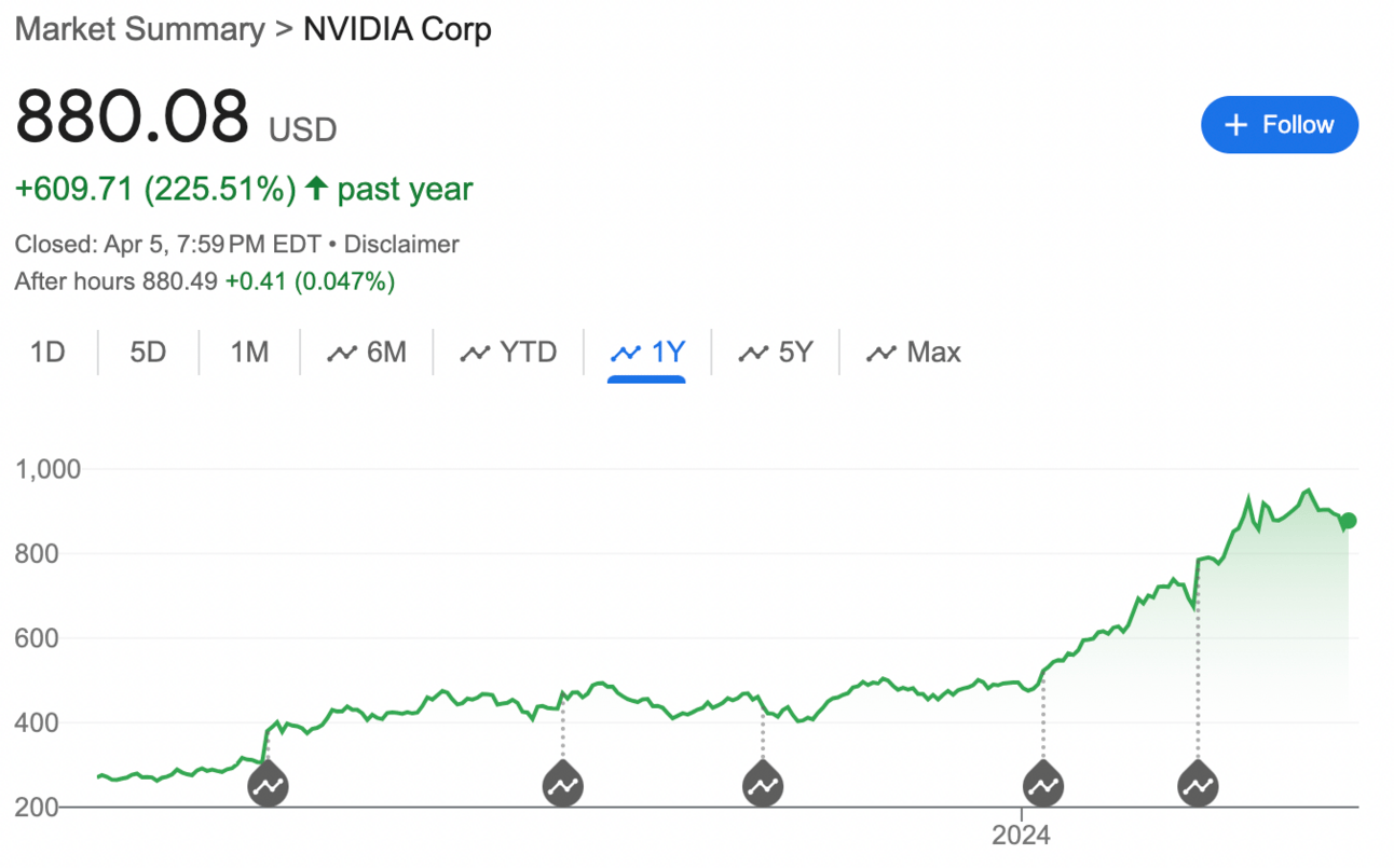 Nvidia’s stock has skyrocketed by a mind-boggling 82% in 2024, a jaw-dropping 225% in the past 12 months, and an eye-popping 1,725% in the past 5 years. With a price tag of $880.08 per share, it's one of the top stocks in the market.