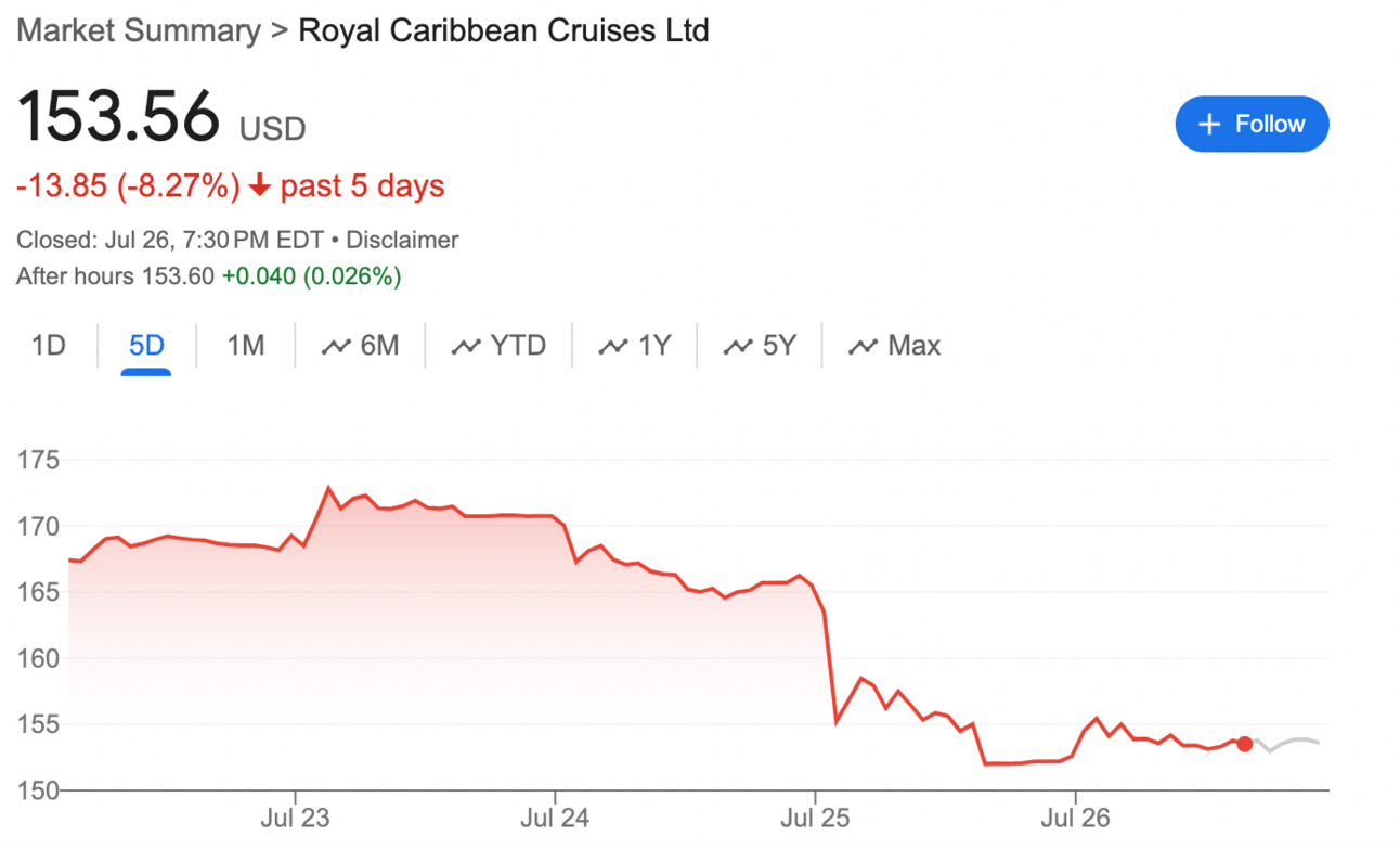 This past week, Royal Caribbean reported good financial results. Earnings per share reached $3.21, and revenue hit $4.1 billion, both better than expected.