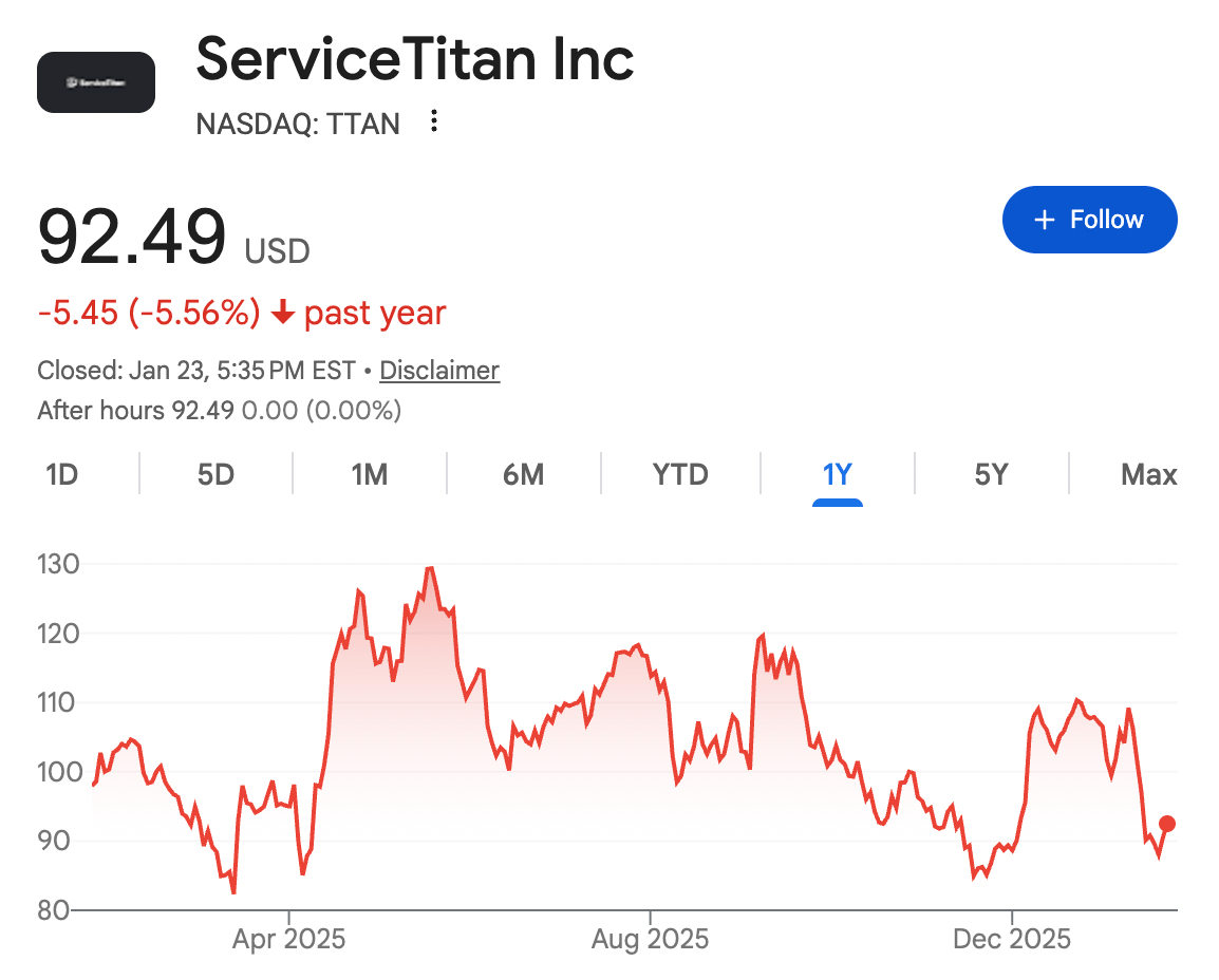 ServiceTitan's $TTAN ( ▲ 2.01% ) stock is at a crossroads in 2026. The stock has taken a bit of a nosedive, down 5.56% over the past year. Some say it's because of valuation concerns, as the company posted operating losses in parts of 2025. Others blame the broader losses in the enterprise software sector.