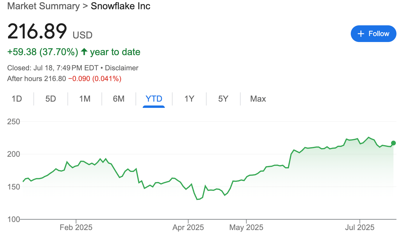 Snowflake $SNOW ( ▲ 2.05% ), the cloud-based data storage company, has been making waves in the stock market. With a 37.70% rise this year, the company is restoring investor confidence after last year's leadership shake-up.