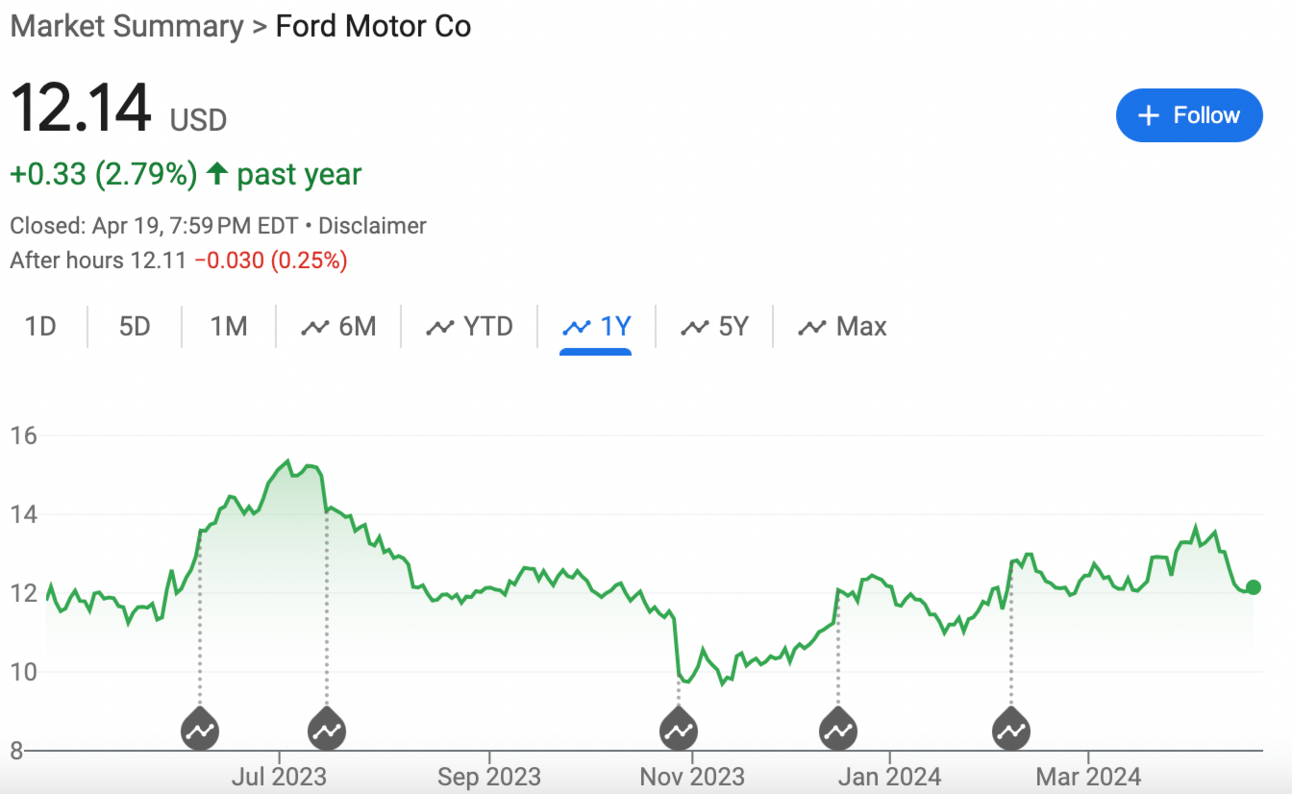With EV stocks in the financial ICU, it’s time to ponder if we should dust off our old gas-guzzling friends – the traditional automakers. Cue the entrance music for Ford (NYSE: F) – the reliable, classic car giant that’s managed to eke out a 2.79% gain in the last 12 months.